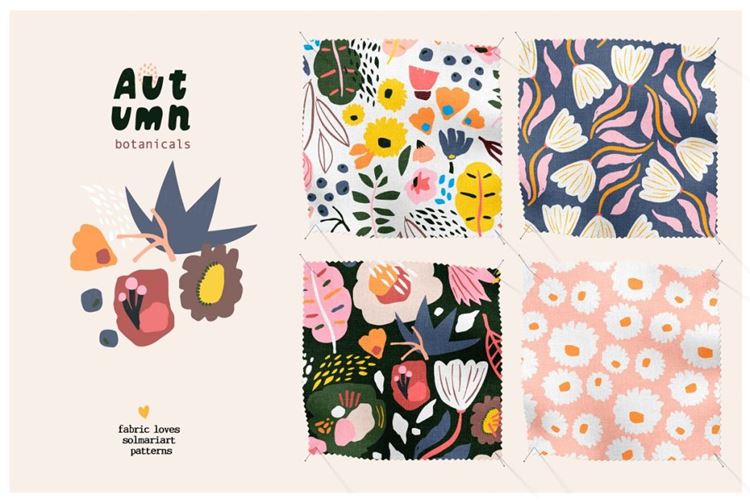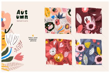 秋季抽象现代花卉无缝拼接图案素材合辑 Autumn bota