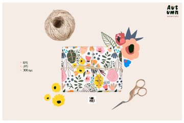 图穷联素材库 » 秋季抽象现代花卉无缝拼接图案素材合辑 Autumn bota
