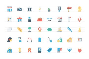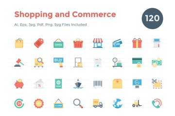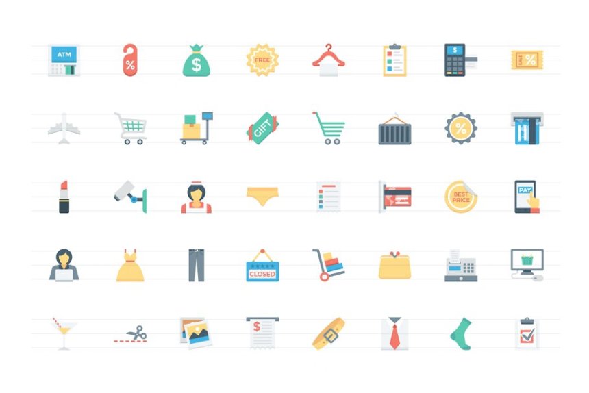图穷联素材库 » 电商购物矢量图标 Flat Shopping and Commerce Icon