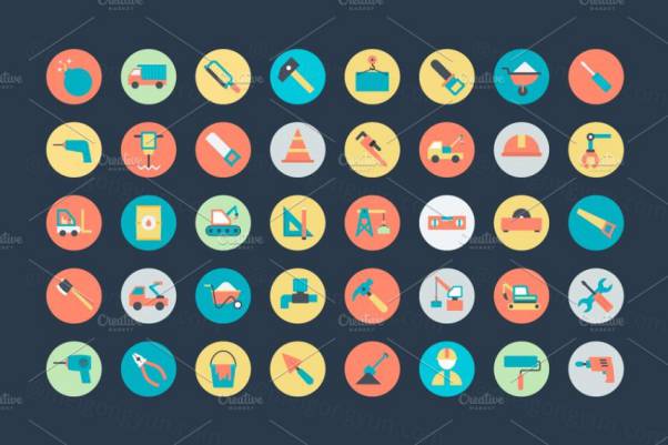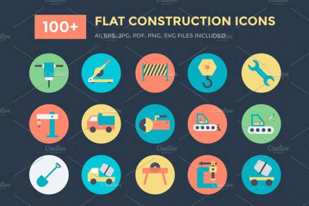 图穷联素材库 » 建筑图标素材 100 Flat Construction Icons