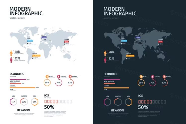 图穷联素材库 » 现代图表时间线饼状图商业图表元素包 Modern Edita