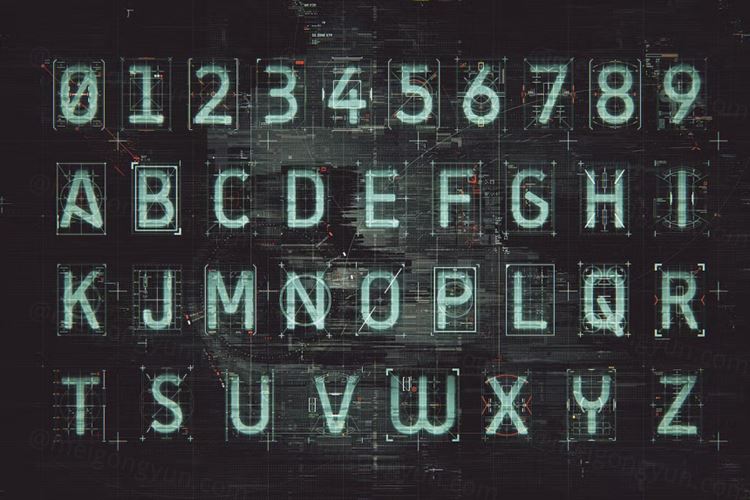 图穷联素材库 » 潮流科幻未来派故障效果字母HUD线框网格元素合辑 HUD A