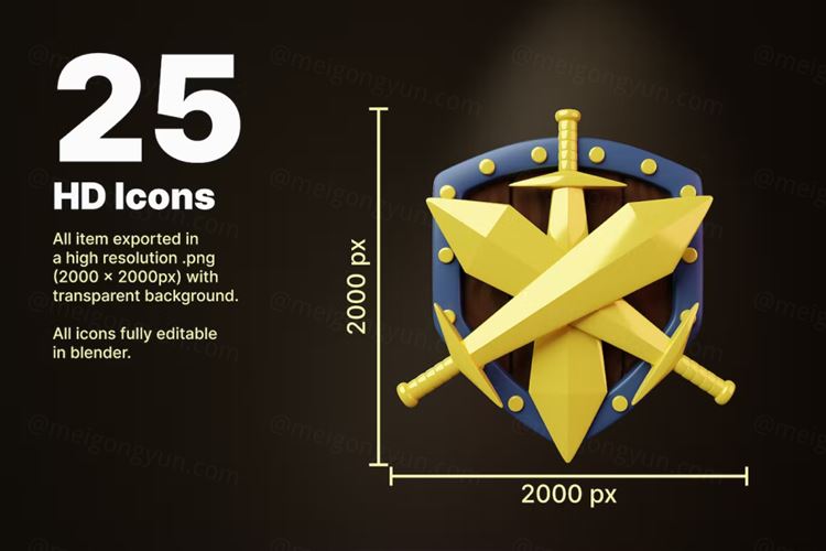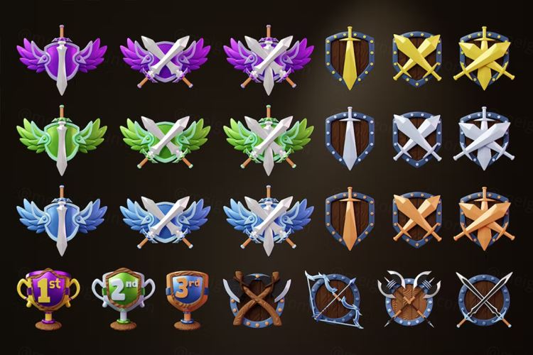 将史诗般的战争氛围带入您的项目...使用我们的数字铁匠制作的这个 3D 游戏徽章,您可以将您的项目升级为您做过的最强大的项目。可用于战争主题游戏、应用程序、演示文稿和其他项目。在 Blender 中完全可定制。