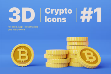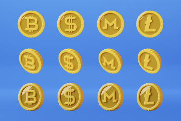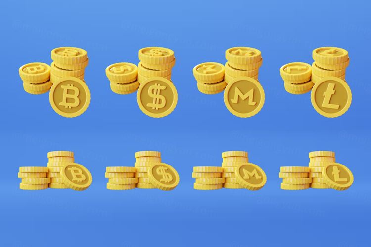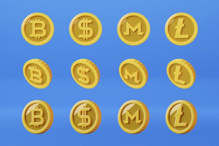 图穷联素材库 » 三维渲染卡通比特币加密货币金币3D插画图标素材 3D Bit