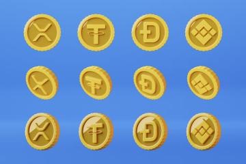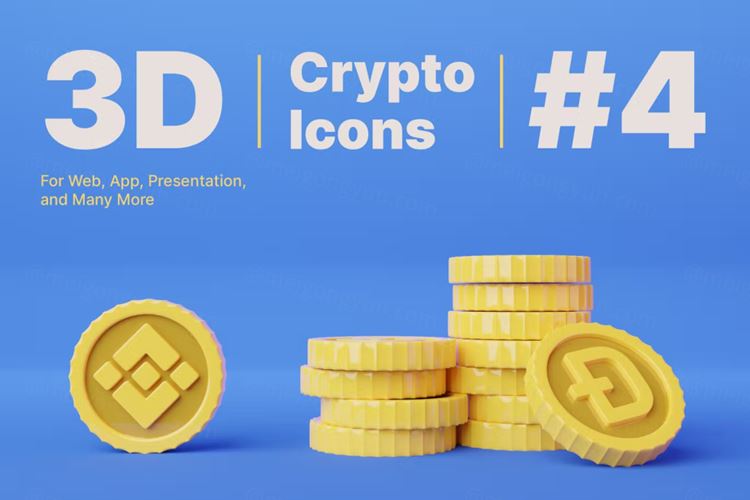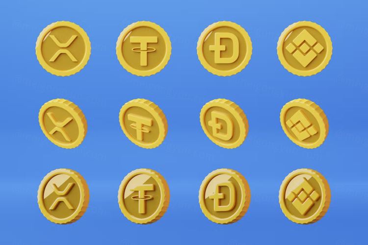 图穷联素材库 » 三维渲染卡通比特币以太坊加密货币金币3D插画图标素材 3D