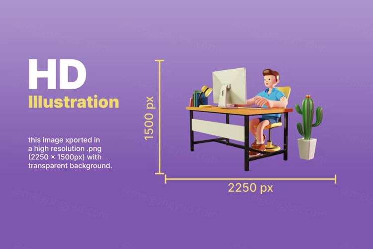 图穷联素材库 » 三维渲染卡通居家办公男士3D人物插画素材 3D Work F