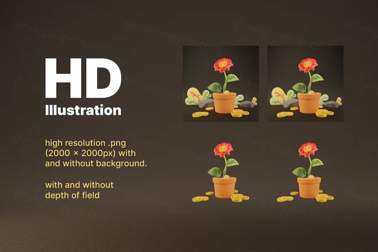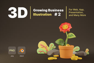 为您的项目带来积极的氛围。您将获得一张成长中的企业插图,其中有 4 个可选,景深是否处于活动状态。有或没有背景。可用于任何登陆、应用程序、游戏、演示文稿和任何其他项目。在搅拌机中完全可编辑。