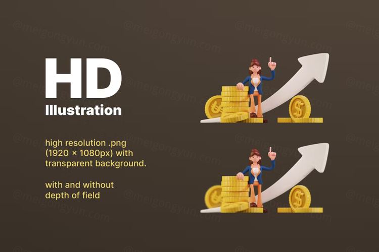 图穷联素材库 » 三维渲染卡通企业成长业务业绩上升3D商业插画素材 3D Gr