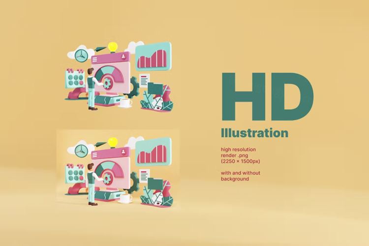 图穷联素材库 » 三维渲染企业数据研究产品开发3D商业插画素材 3D Rese