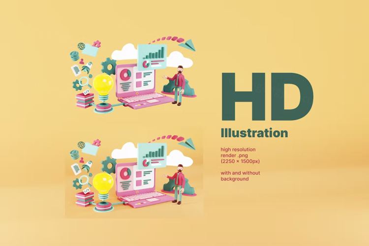 图穷联素材库 » 三维渲染企业管理工作流程3D商业插画素材 Managing