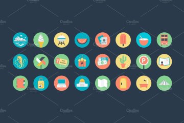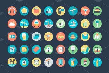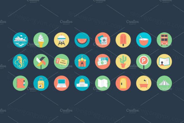 图穷联素材库 » 扁平化旅行图标大全 100 Flat Travel Icons
