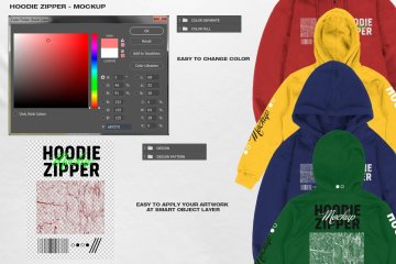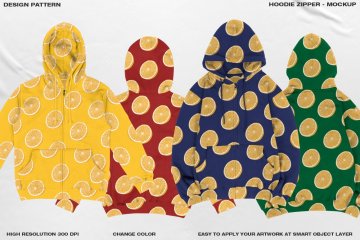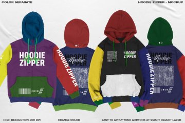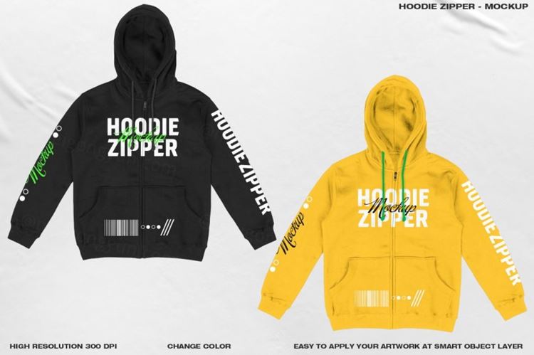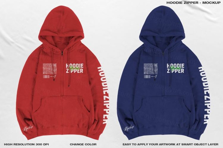 “Hoodie Zipper - Mockup”这个模板可以让你做模型。具有高分辨率 300 DPI,易于更改颜色,并且易于在智能对象层应用您的作品。文件类型 PSD(最小 cc2014)