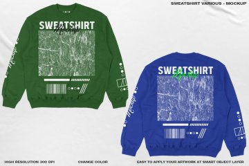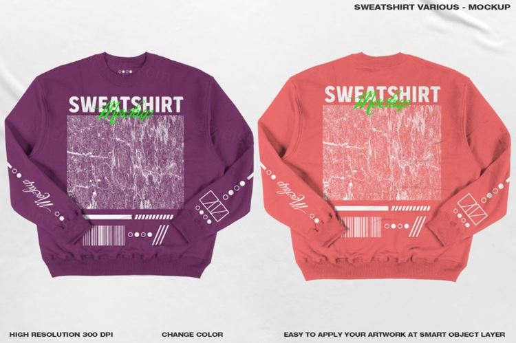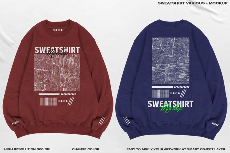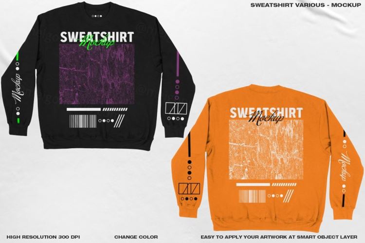 “运动衫各种 - 样机”此模板允许您进行样机。具有高分辨率 300 DPI,易于更改颜色,并且易于在智能对象层应用您的作品。文件类型 PSD(最小 cc2014)