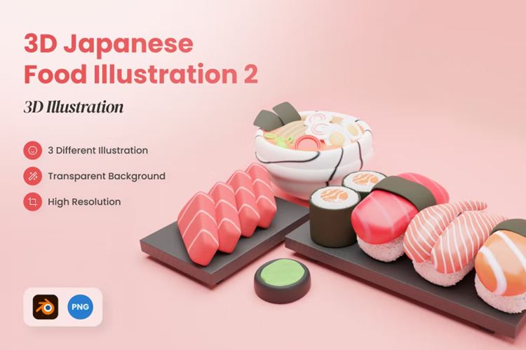 您的项目能否引起人们的胃口?通过使用这些由我们的数字厨师制作的日本食品 3D 插图,您可以将您的项目升级为食欲生成器。可用于任何登陆、应用程序、演示文稿和其他项目。在 Blender 中完全可定制。