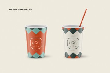 图穷联素材库 » 高质量咖啡杯茶杯纸杯饮料快餐品牌包装设计样机模板 Paper