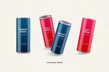 图穷联素材库 » 高质量夏季苏打水可乐饮料易拉罐包装设计展示样机模板 Soda