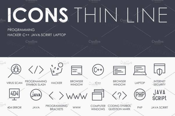 图穷联素材库 » 编程开发矢量图标 Programming thinline icon