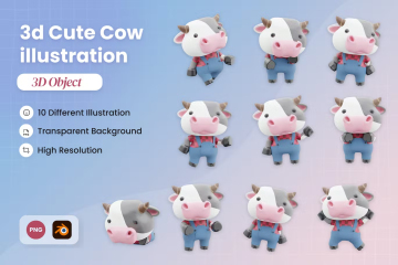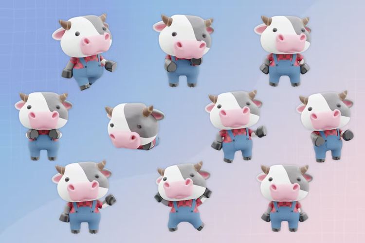 图穷联素材库 » 三维渲染可爱奶牛3D卡通形象插画素材 3D Cute Cow
