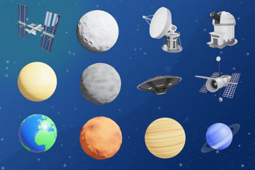 图穷联素材库 » 三维渲染卡通太空望远镜卫星空间站主题3D插画素材 Space