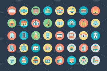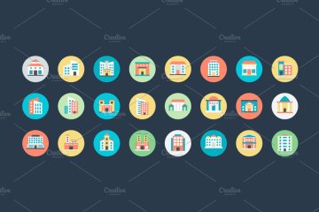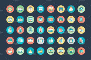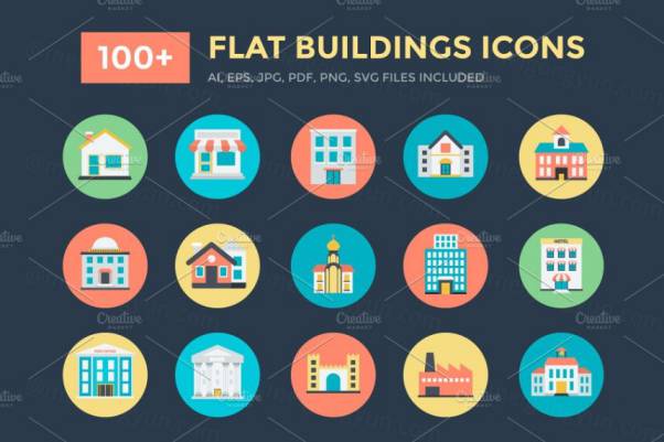 建筑矢量图标 100 Flat Buildings Vector Icons