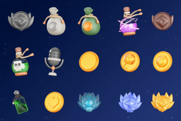 图穷联素材库 » 三维渲染魔法药水金币钱袋勋章游戏主题元素3D插画素材 3D
