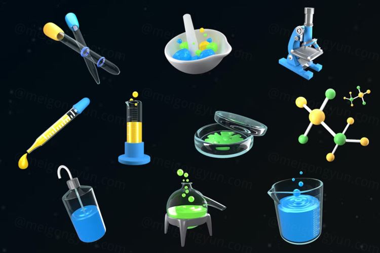 图穷联素材库 » 三维渲染显微镜试管量杯化学科研主题3D图标插画素材 3D S