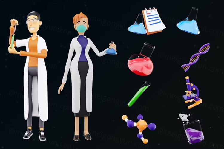 图穷联素材库 » 三维渲染生物化学科研人员主题3D人物插画素材 3D Scie