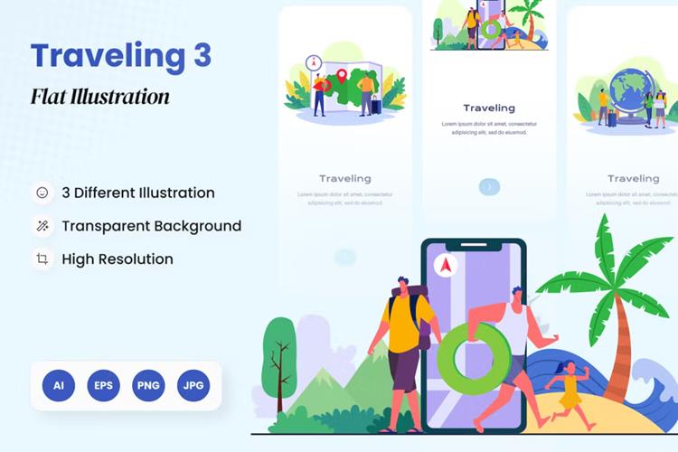 图穷联素材库 » 扁平化野餐度假旅行主题场景矢量插画素材Traveling F
