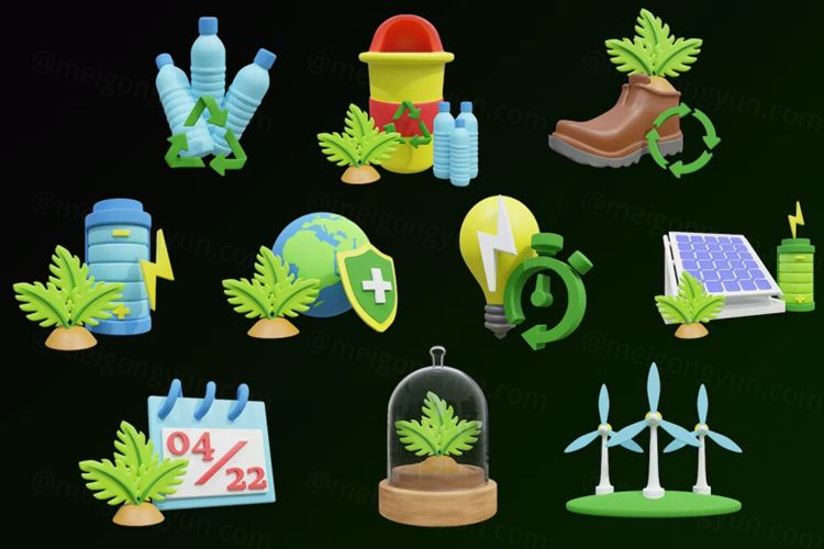 三维渲染生态自然回收绿色环保主题3D图标插画素材 3D Go