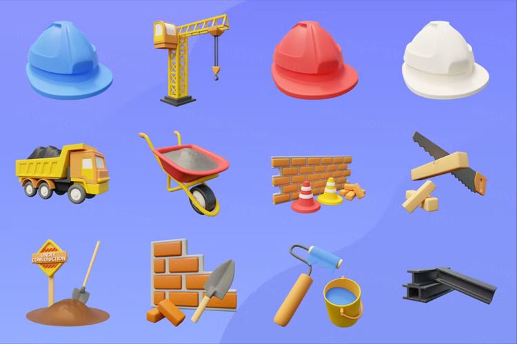 图穷联素材库 » 三维渲染安全帽建筑工地施工维修主题插画素材 3D Const