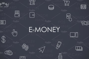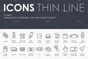 图穷联素材库 » 金融矢量图标素材 E-money thinline icons