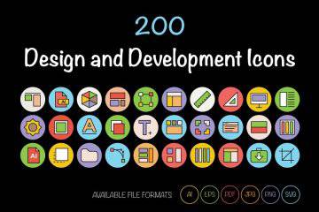 图穷联素材库 » 200个设计和开发图标素材 Design and Development Ico