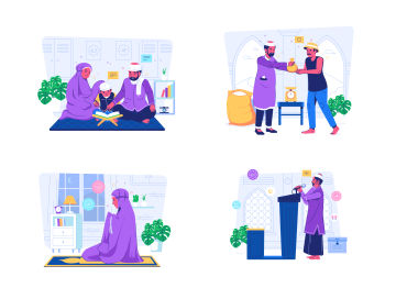 现代伊斯兰教场景人物插图素材合辑 Illustraly -