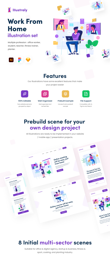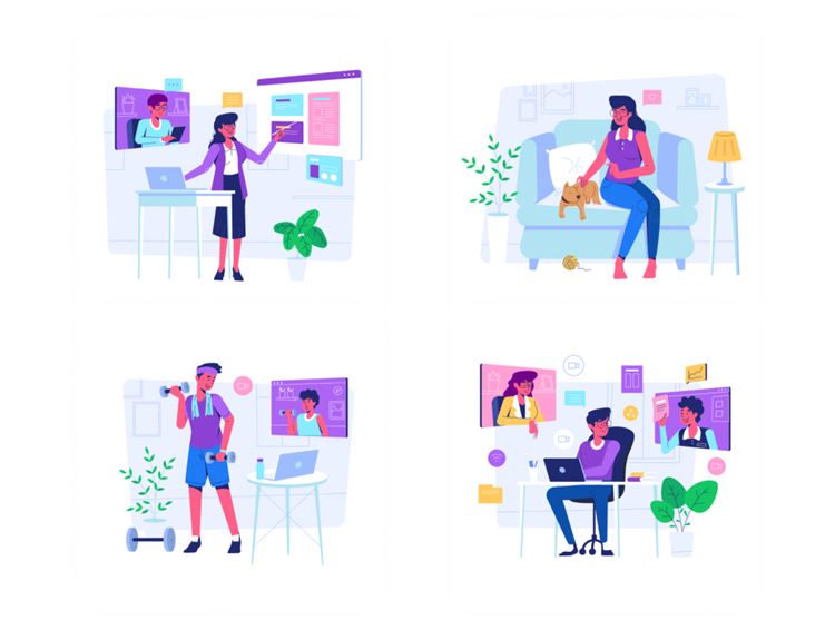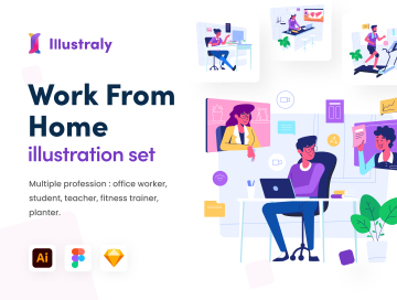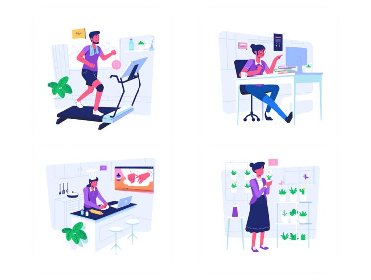 图穷联素材库 » 居家工作学习锻炼生活主题插画素材合辑 Illustraly