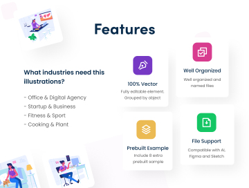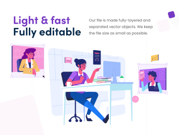 100% 矢量可编辑和可缩放。颜色很容易改变。每幅插图都经过组织、命名且非常易于使用。