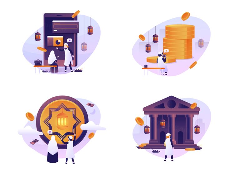 图穷联素材库 » 中东伊斯兰银行金融投资业务商业插画素材 Muamalah -