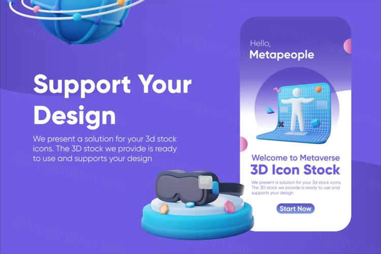 元宇宙游戏VR眼镜未来技术3D插画图标素材合辑 Metave