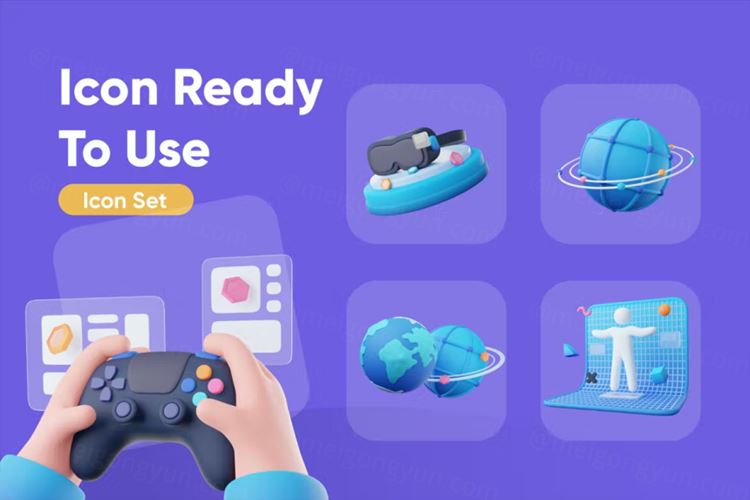 图穷联素材库 » 元宇宙游戏VR眼镜未来技术3D插画图标素材合辑 Metave