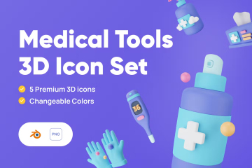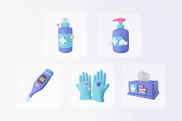 图穷联素材库 » 三维渲染卡通手套体温计抽纸消毒液3D插画图标素材 Medic