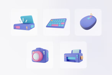 图穷联素材库 » 三维渲染卡通相机打印机鼠标键盘3D插画图标素材 Hardw