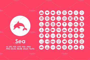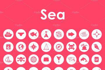 图穷联素材库 » 海洋元素矢量图标素材 56 Sea simple icons