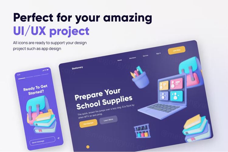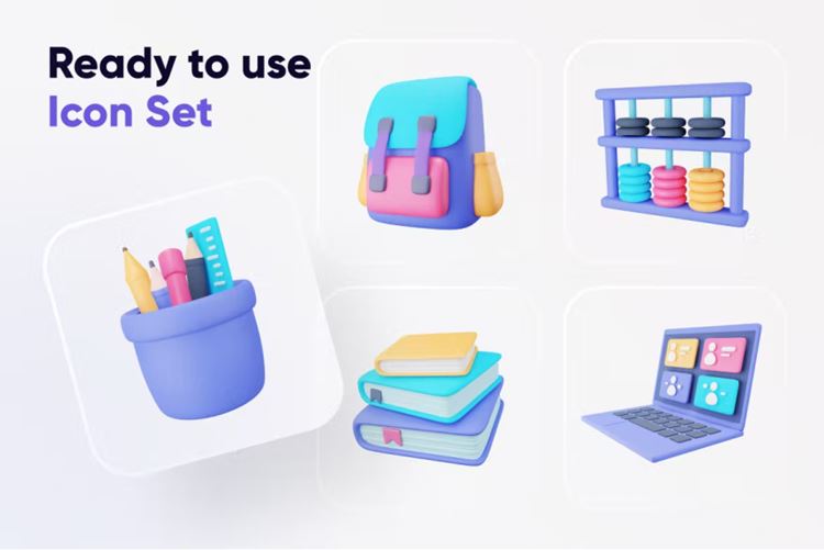 图穷联素材库 » 三维渲染卡通书包算盘书本笔筒教育插画图标素材 Station