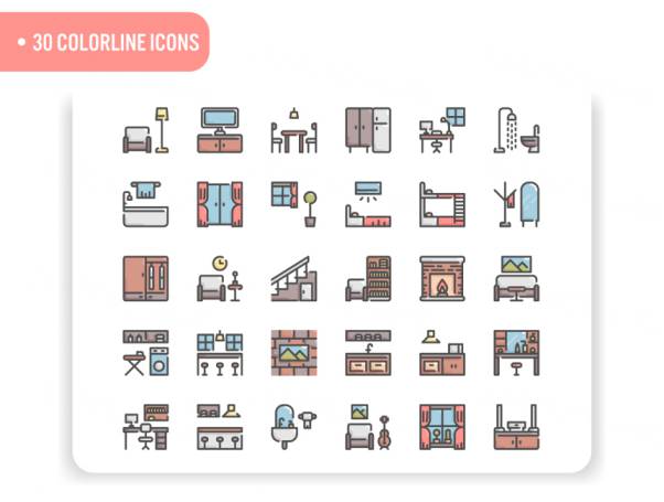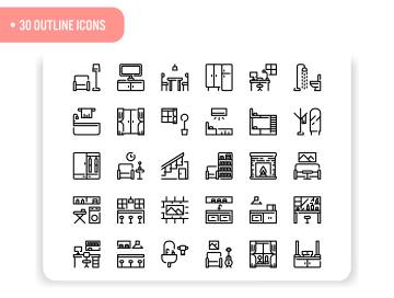 图穷联素材库 » 生动的家具居家矢量图标套装图标素材下载