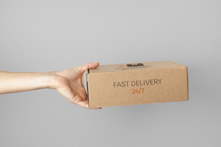 图穷联素材库 » 高质量手持瓦楞纸快递纸箱包装盒贴图设计展示样机PSD模板