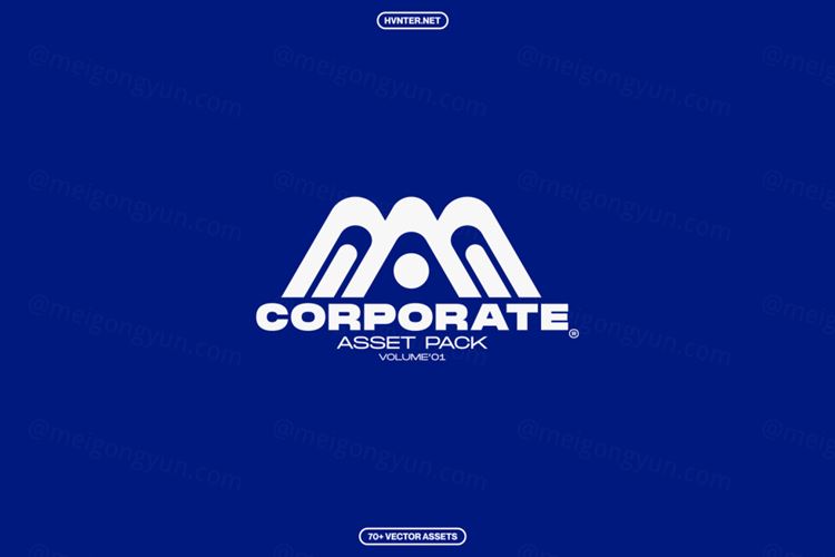企业主题资产包,包括 72 个虚假企业元素的矢量资产,例如符号、图标、徽标等……