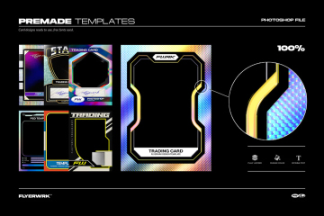 包括您需要的一切,包括 8 个集换式卡片盒和袖子模型,旨在轻松编辑、调整和掌握。10 个空卡模型。您还将获得 8 个设计模板;非常适合制作复古运动集换式卡片。