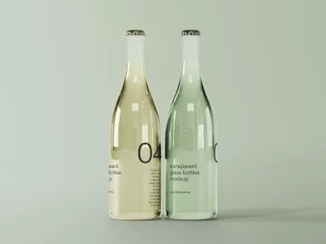半透明玻璃瓶果汁饮料包装设计贴图展示样机PSD模板 Tran
