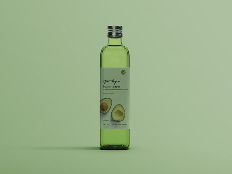 玻璃瓶样机,用于展示您的鳄梨油品牌和标签包装或任何其他油,如橄榄油、芝麻等……