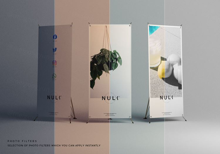 图穷联素材库 » 高质量X展架横幅设计贴图展示样机PSD模板 7 X-Stan