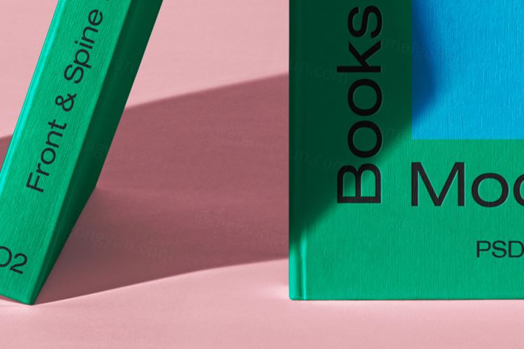 图穷联素材库 » 精装书籍封面书脊设计提案场景展示样机模板 Spine Psd